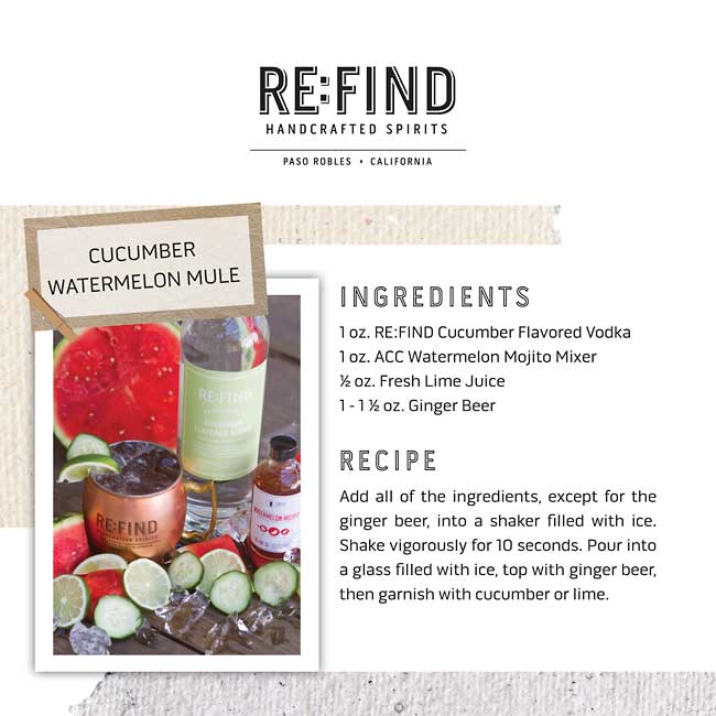 Re:Find Distillery is batch distilling an all-natural cucumber flavored vodka using seasonally ripe, local, organic cucumbers grown by small family farmers. The cucumbers are picked at the height of ripeness and juiced the very same day. The juice is then distilled to the final distillation of our meticulously clean vodka. Bottled without the use of carbon-filtration, the vibrancy and freshness is unparalleled. There are approx. 1 pound of cucumbers in each bottle.